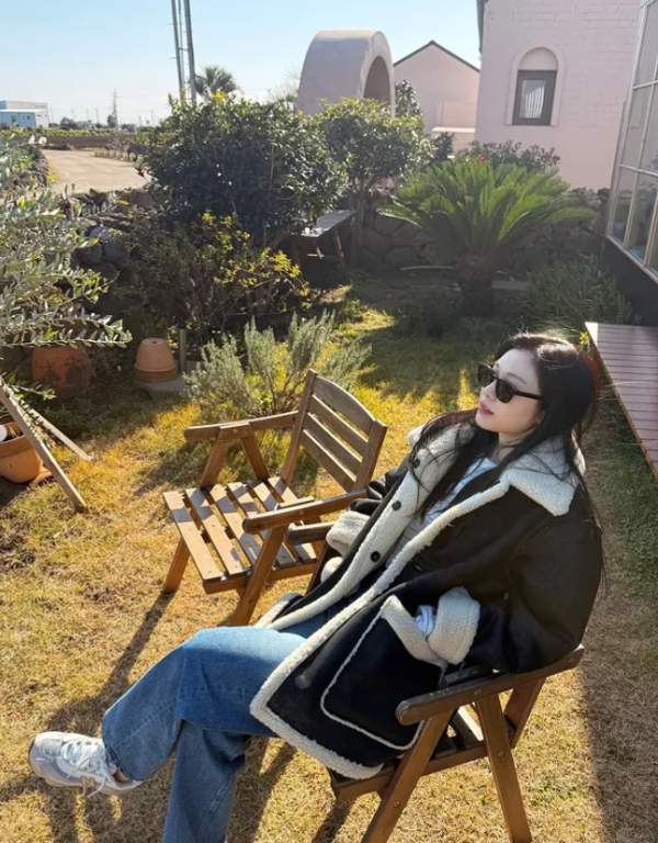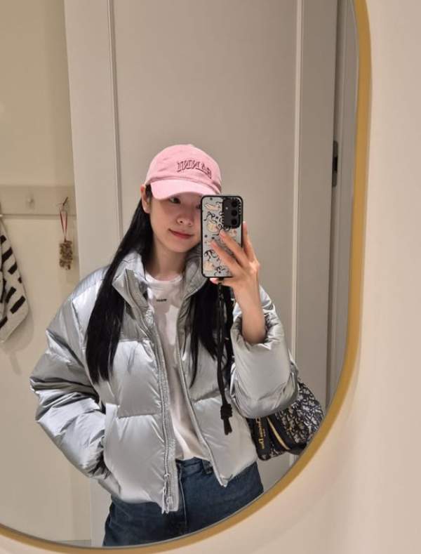 첫 번째 스타일은 실버 크롭 패딩과 데님 팬츠 조합이었습니다. 여기에 핑크색 볼캡을 매치해 사랑스러운 분위기를 연출했습니다. 두 번째 스타일은 블랙 무스탕 자켓과 청바지를 활용한 세련된 스타일이었습니다. 여기에 선글라스를 착용해 더욱 시크한 분위기를 완성했습니다.
