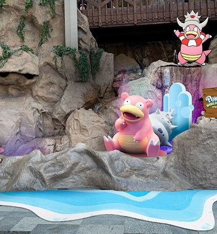 매직아일랜드에서의 포켓몬 시즌 배너와 포토존