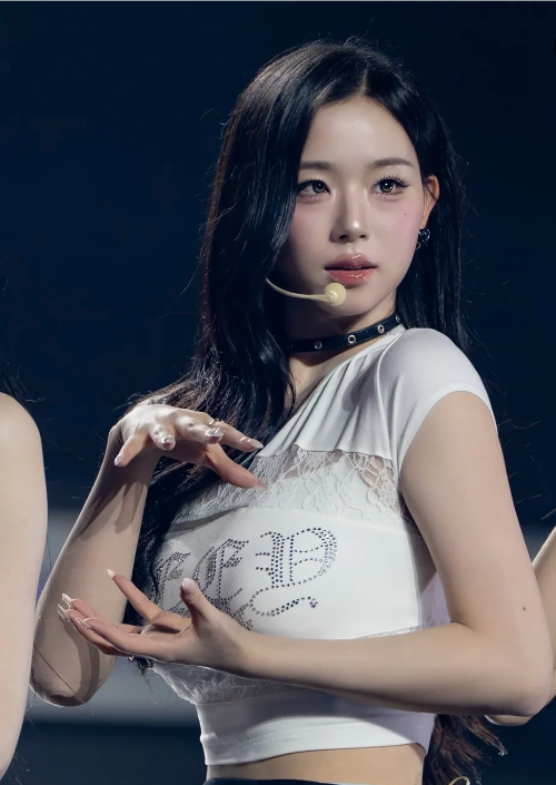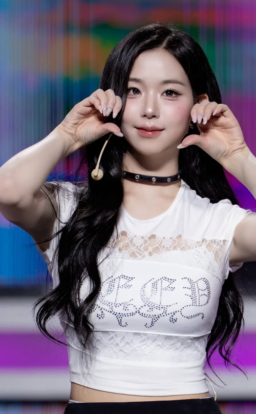 사실 아이돌 하면 외모가 다가 아니라고 하지만 김채연의 비주얼은 정말 반박할 수가 없네요. 화이트 컬러의 레이스 포인트가 들어간 무대 의상을 입고 서 있는 모습은 마치 동화 속 공주님이 현대적으로 재해석된 느낌이랄까요? 특히 검은색 초커를 매치해서 청순하면서도 시크한 매력을 동시에 보여주고 있는데 이게 정말 신의 한 수였던 것 같아요.