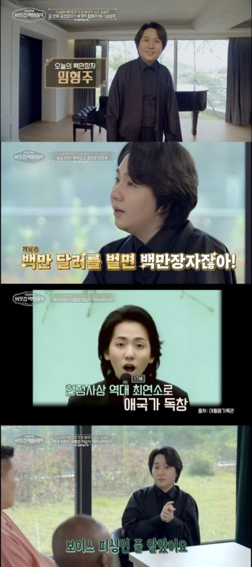 “그가 왜 방송에 모습을 드러내지 않았는지 궁금했나요? 수많은 러브콜에도 15년 동안 꿋꿋이 거절해 왔던 세계적 팝페라 거장 임형주가 드디어 ‘이웃집 백만장자’를 통해 무려 500억 원대 수입을 공개합니다! 화려한 무대 뒤, 인간 임형주의 진짜 이야기가 궁금하시다면 놓치지 말고 끝까지 읽어보세요!”