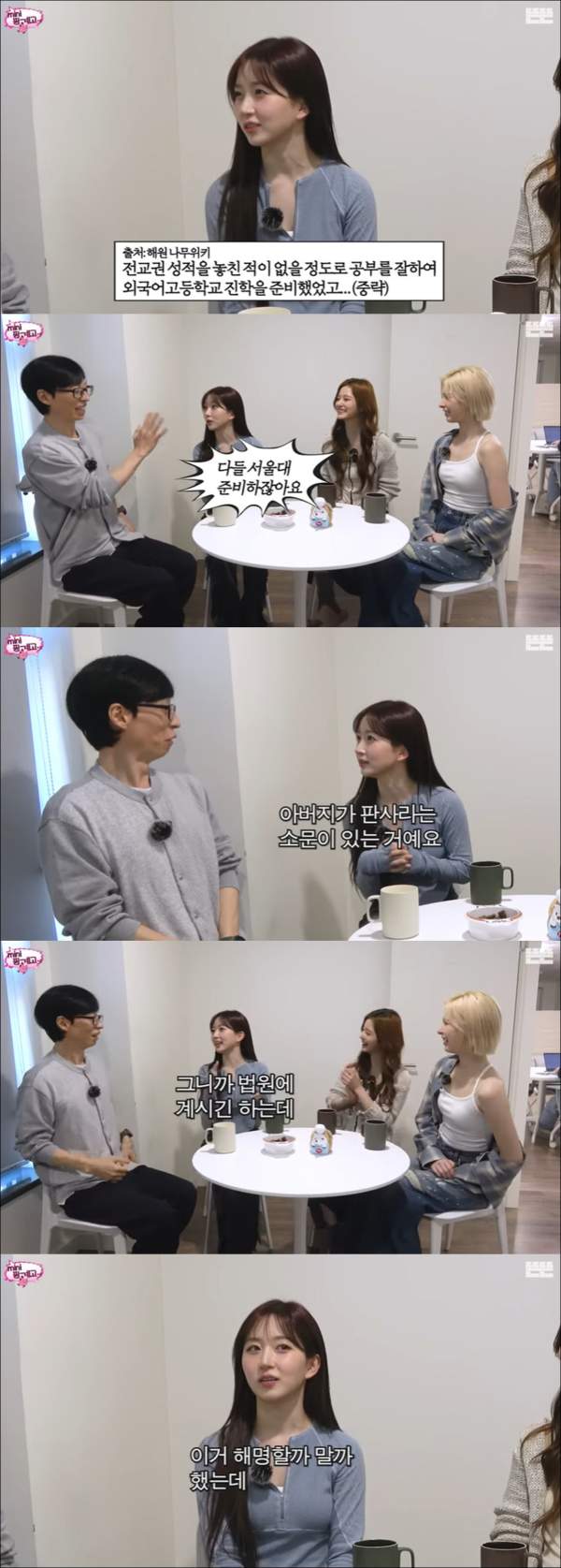 해원은 또 “나무위키에서 내가 '외고를 준비했다'라고 적혀 있던 것을 보고, 사실 누구나 비슷한 준비를 했을 것”이라는 말로, 학창 시절의 흔한 오해와 과장된 정보에 웃음을 터트리기도 했습니다. 그 솔직한 입담은 시청자들에게 큰 공감을 불러일으켰으며, 자신을 둘러싼 다양한 루머와 오해를 웃음으로 승화시키는 모습이 인상적이었습니다.